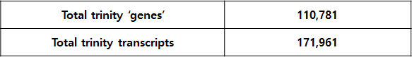Fasta 형식의 심볼의 규칙에서 TRINITY_DNxxx|cxx‘ 는 Trinity read cluster 를 의미하고, 'g‘ 는 gene 을 ‘i ‘는 isoform 을 의미함.