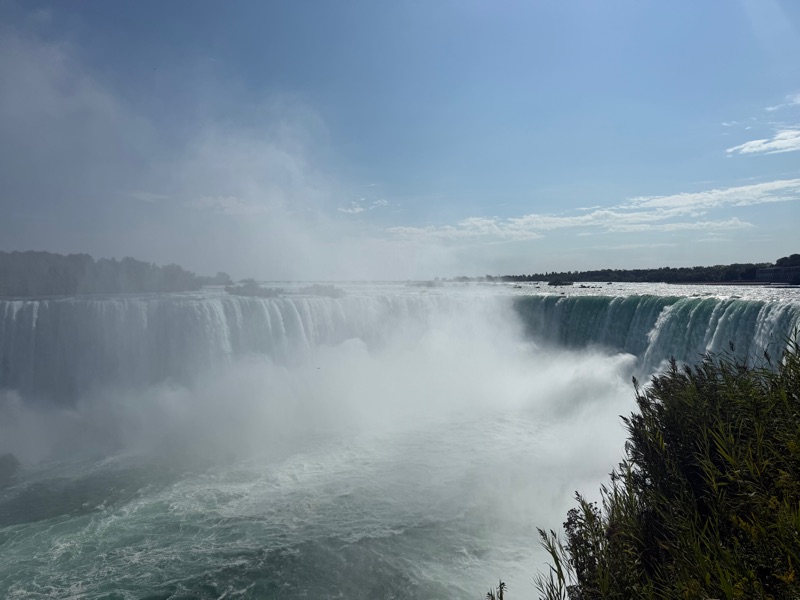 - 캐나다쪽이 폭포를 정면에서 볼 수있는 것은 맞지만, 자연그대로 트래킹을 보존해 놓은 곳은 미국이다. 미국쪽은 폭포가 떨어지 것을 가깝게 볼 수 있으며 나무들이 주변을 애워싸도록 상업화를 하지 않았다. 반면 캐나다는 나무가 없고 꽃으로 장식을 해놓고 걷는 길 바로 옆에 다수의 기념품과 식당을 배치해 상업화되어있다. 나는 자연을 더 좋아하는 편이라 미국쪽이 오히려 더 즐길 거리가 많았다.